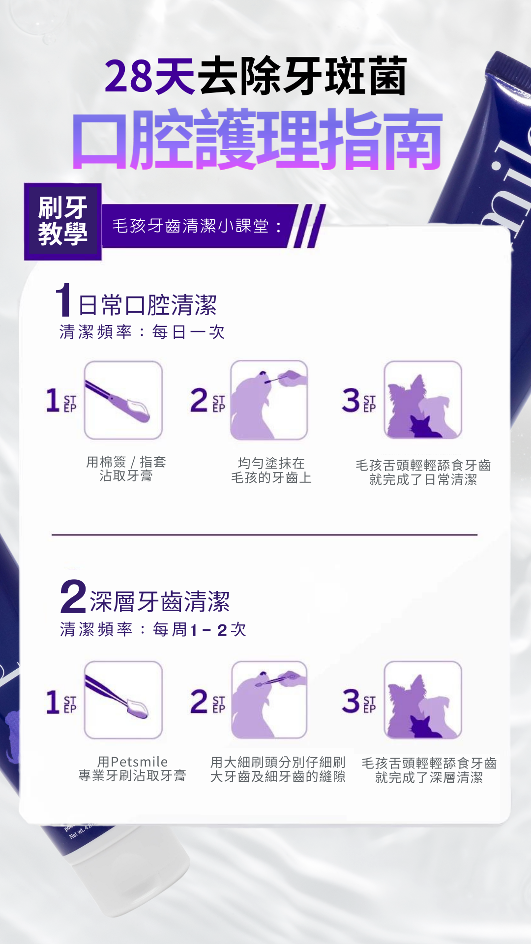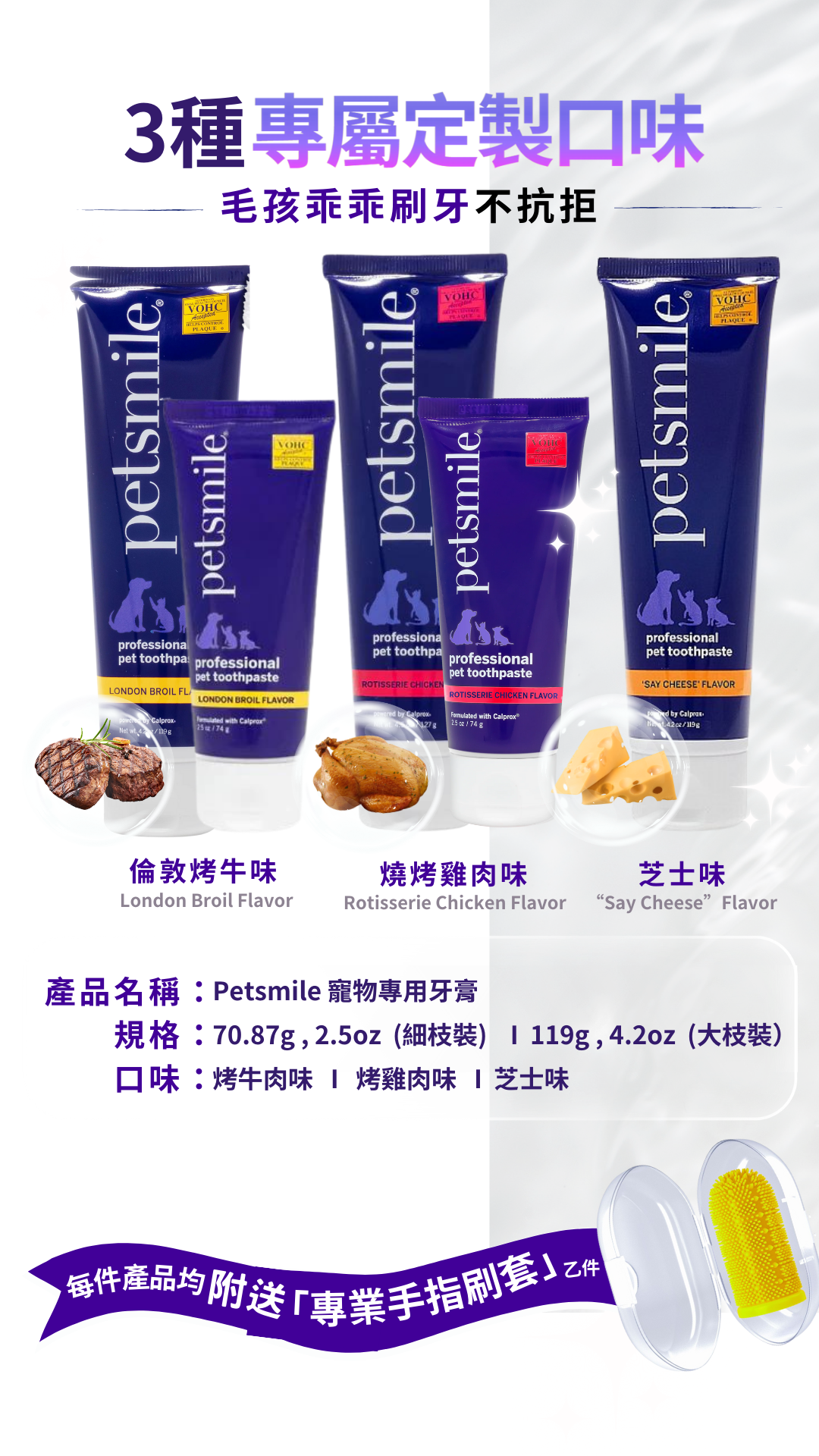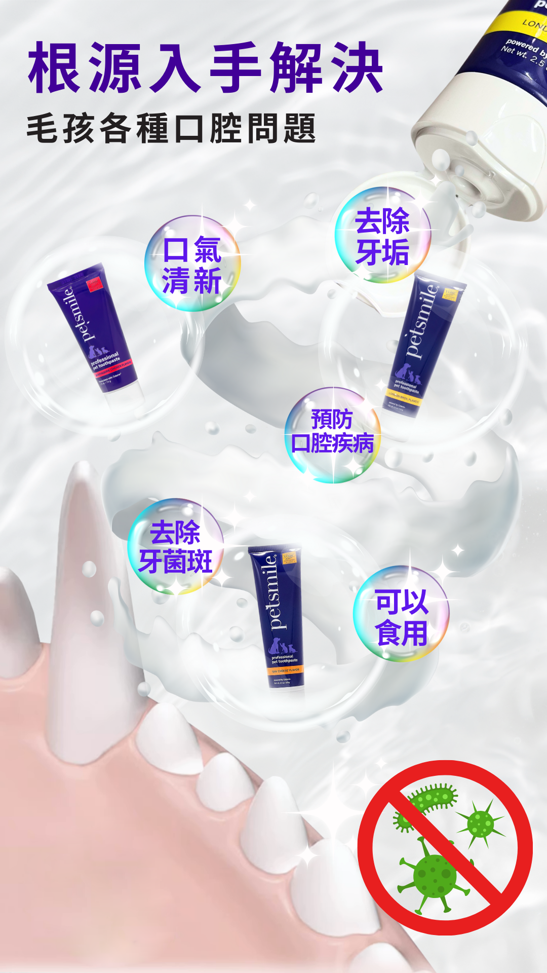 • [獸醫口腔健康委員會接受寵物和狗牙膏] - Petsmile 是唯一 VOHC 推薦給您的寵物使用 Calprox 牙膏。 獸醫選擇Petsmile,因為高品質的成分可以促進白牙和健康的牙齦。 VOHC 認識到 Petsmile 符合寵物口腔健康的最高標準。 每天使用 Petsmile 牙膏和刷牙會顯著改善寵物的口腔健康。