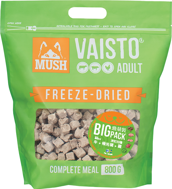 MUSH 芬蘭凍乾狗糧 VAISTO 牛+極光豬+雞 800g (綠)