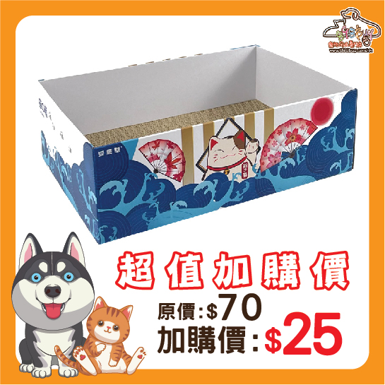 買滿$100加購 瓦楞紙紙箱貓抓板 無頂貓屋 招財貓(紅/藍) 37.5*25*12cm