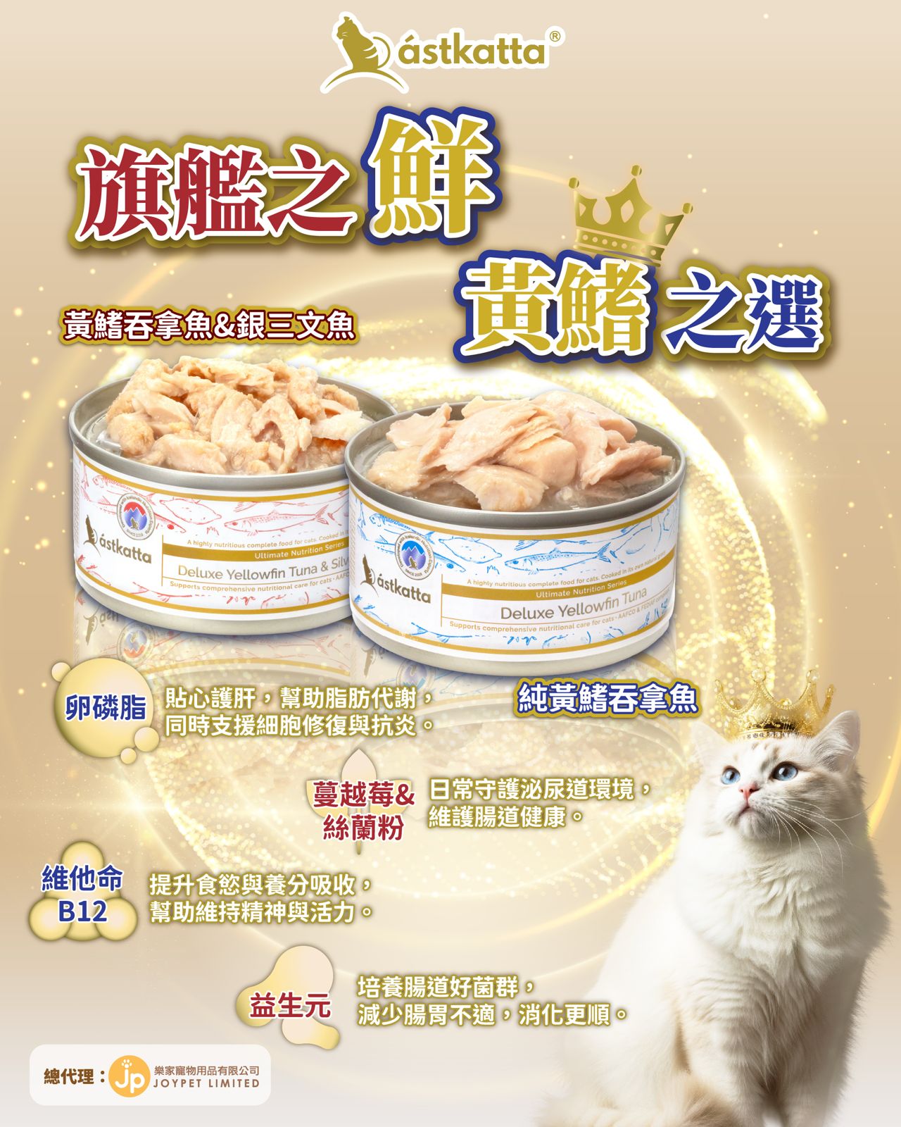[$396/24罐]Astkatta 無膠主食貓罐頭(肉絲) 純黃鰭吞拿魚 (全貓) 80g (白藍)