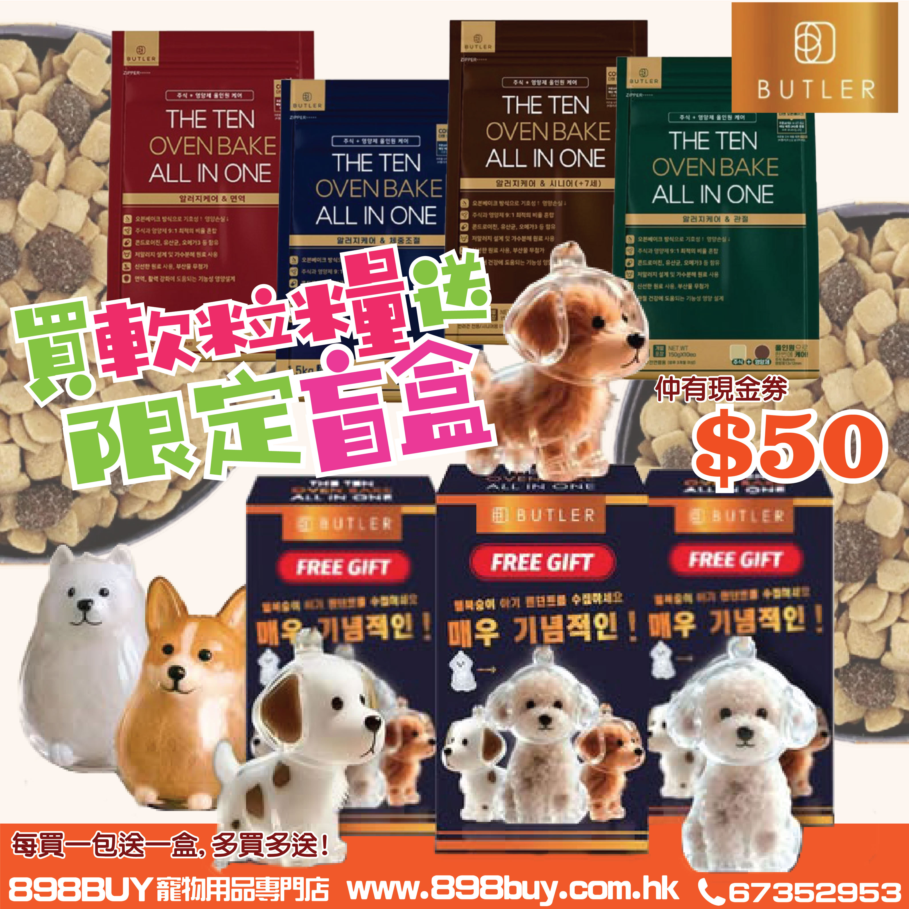 凡購買1包Butler The Ten 狗糧,即可免費換領 "狗狗吊飾盲盒" 1件