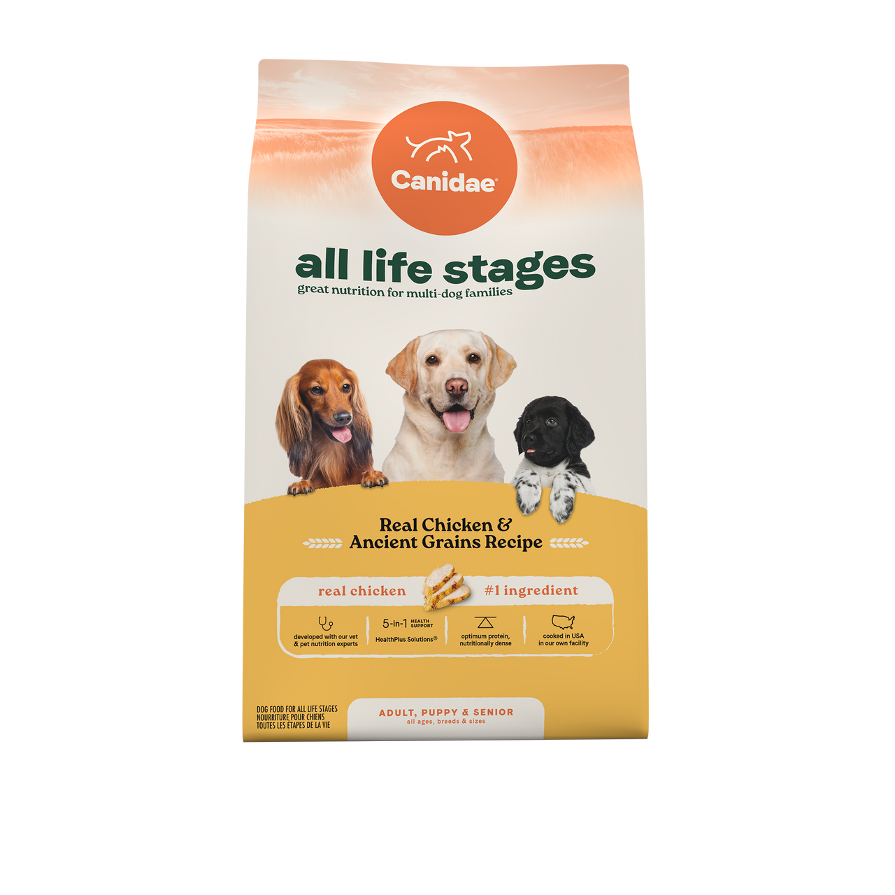 Canidae 狗糧 全犬 雞肉+原始穀物配方 專為所有年齡段的犬隻設計。本配方以不含抗生素的雞肉為主要成分,並添加燕麥、大麥、高粱和小米等古老原始穀物,提供易於消化的高品質蛋白質和複合碳水化合物,以維持肌肉健康和持久活力。本配方不含玉米、小麥、大豆和動物副產品,採用可持續種植的原料,並由獸醫營養專家團隊根據美國飼料管理協會(AAFCO)標準配製而成,確保全面均衡的營養。本配方特別添加了HealthPlus Solutions益生菌複合物,透過五大健康支持系統—消化、毛髮、免疫、心臟和關節—促進整體健康。燕麥和大麥富含膳食纖維和B群維生素,有助於腸道功能;無麩質小米提供必需胺基酸;豌豆富含抗氧化維生素C,有助於增強營養吸收。 Canidae 可作為狗狗各個生命階段的主食,從幼犬到老年犬,每一口都健康美味,為多犬家庭提供全面均衡的營養。在 Canidae,我們致力於為毛茸茸的孩子和地球生產更優質的寵物食品。