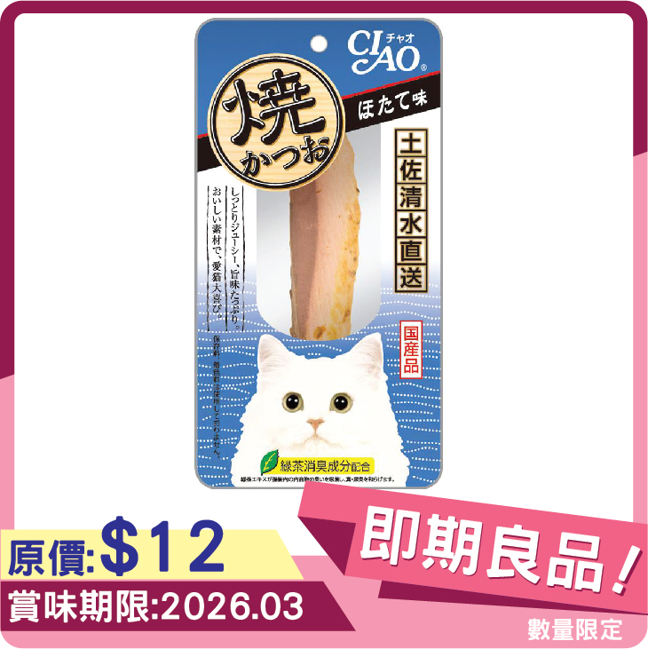 [特價品]日本CIAO 燒鰹魚條 鰹魚+扇貝味 1本 (YK-02) [EXP:2026.03]