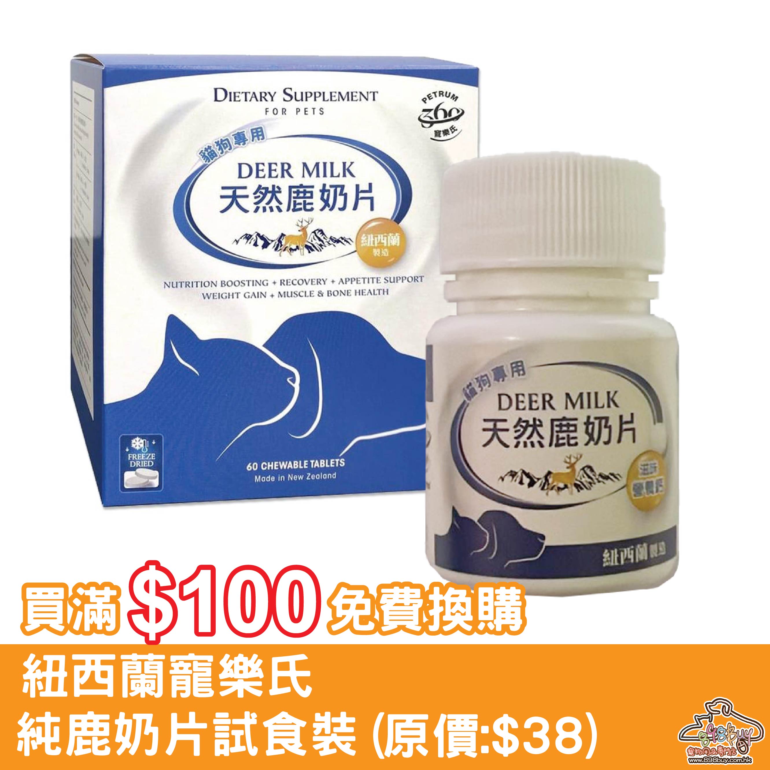 買滿$100免費換購 Petrum360 寵樂氏 Deer Milk 天然鹿奶片(貓狗用) 試食裝