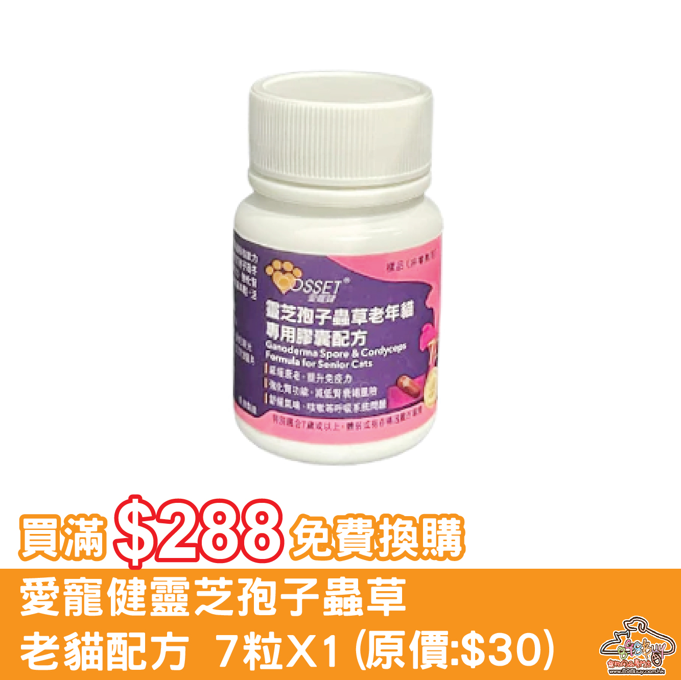 買滿$288免費換購 Cosset 愛寵健 靈芝孢子蟲草老年貓專用配方 7粒 (膠囊)