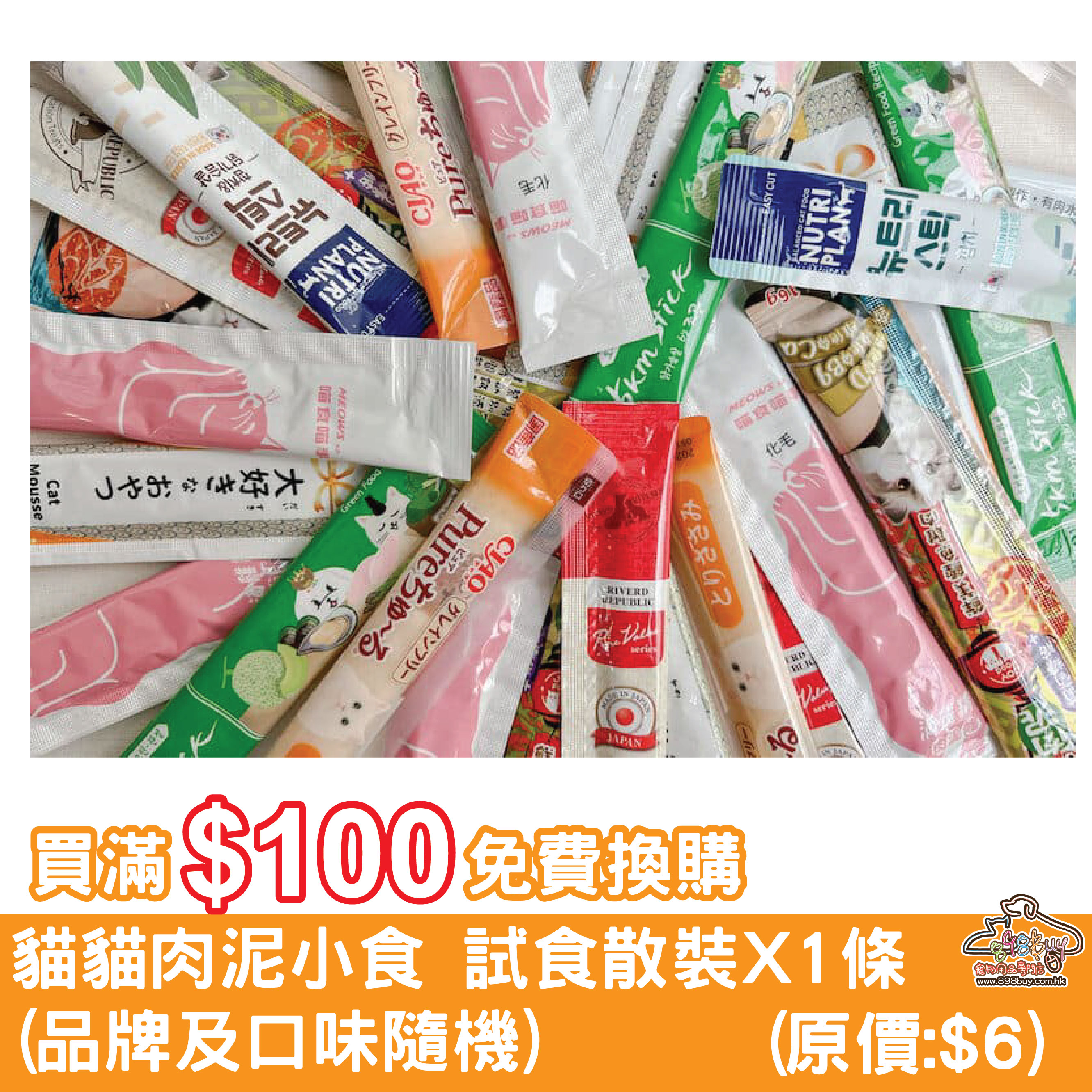買滿$100免費換購 貓貓肉泥小食 試食散裝X1條 (品牌及口味隨機)