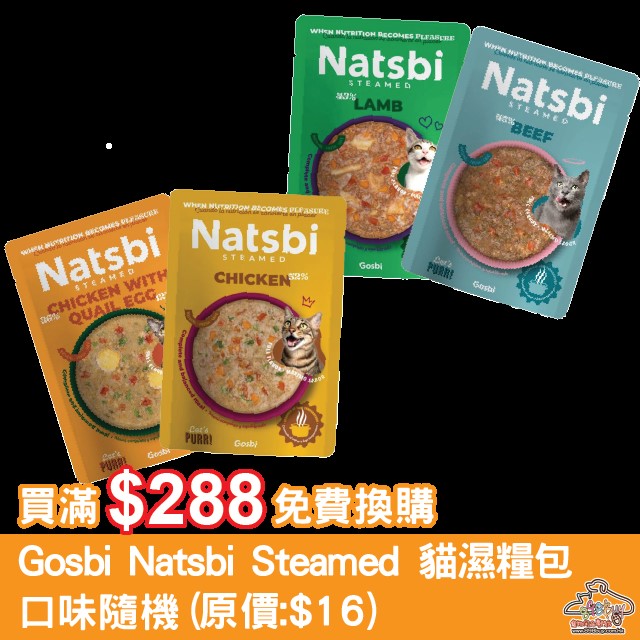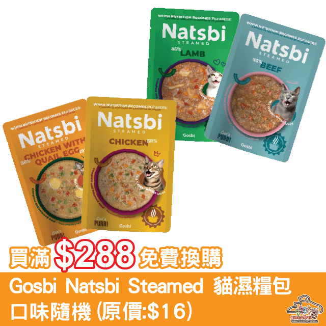 買滿$288免費換購 Gosbi Natsbi Steamed 地中海低溫蒸煮貓濕糧包 80g (隨機口味)