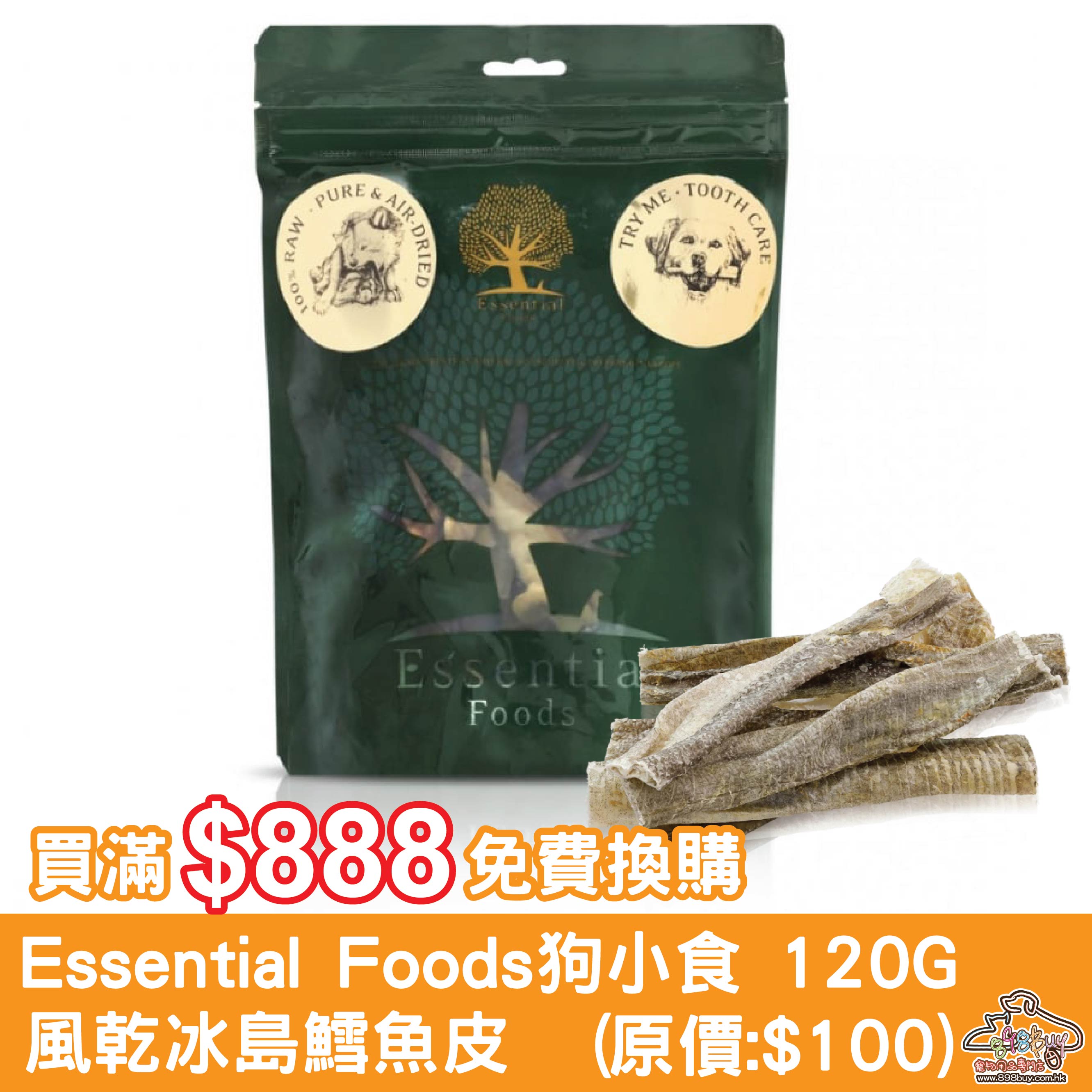 買滿$888免費換購 Essential Foods 易膳 狗小食 風乾冰島原隻鱈魚皮乾 120G