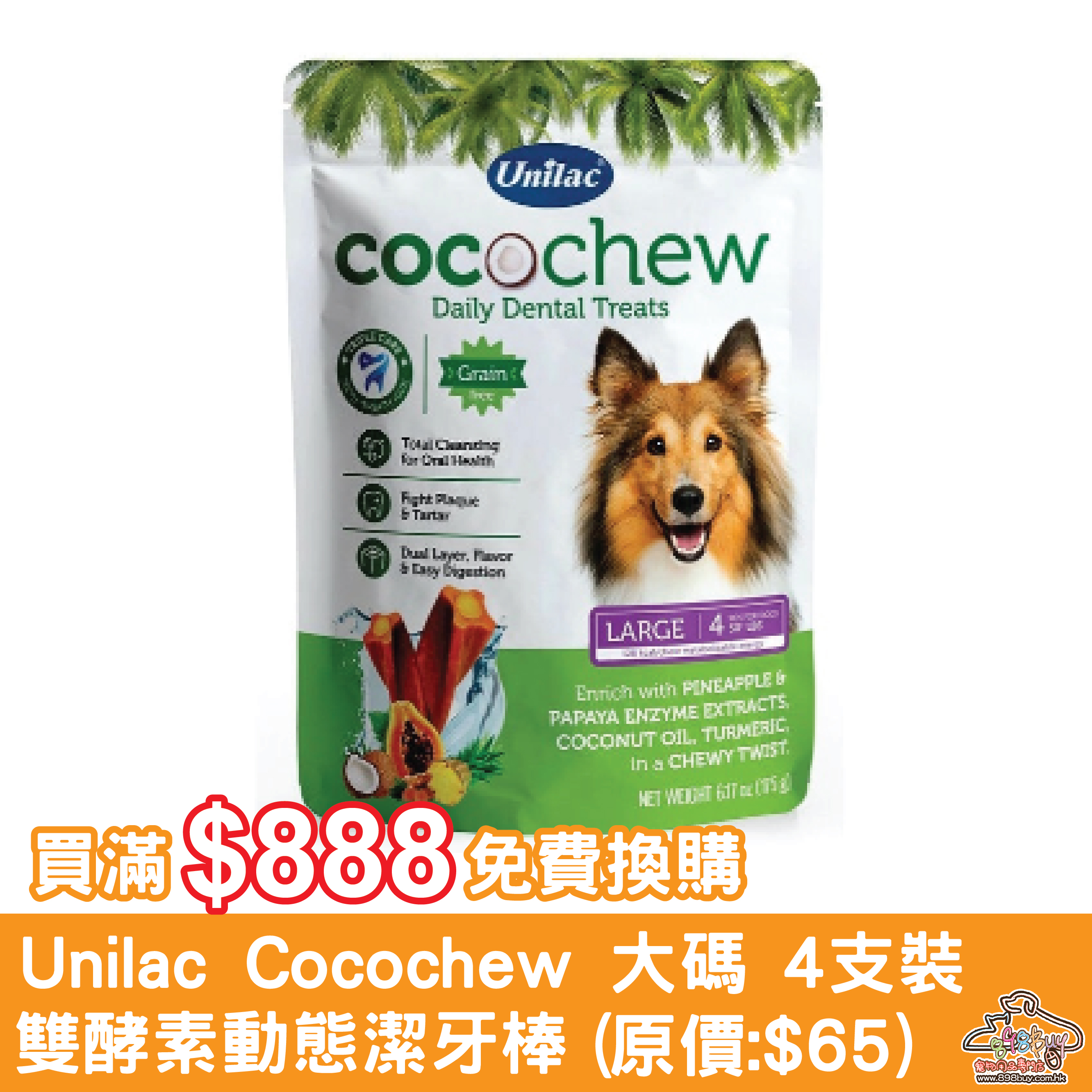買滿$888免費換購 Unilac Cocochew 優立樂可口清 雙酵素動態潔牙棒 175g 大碼 4支 (50lb以上狗狗適用)