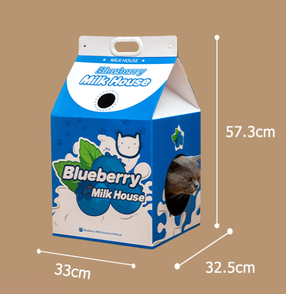 日式牛奶盒造型瓦楞紙貓抓屋 藍莓牛奶(可手提) [57.3cm*32.5cm*33cm]