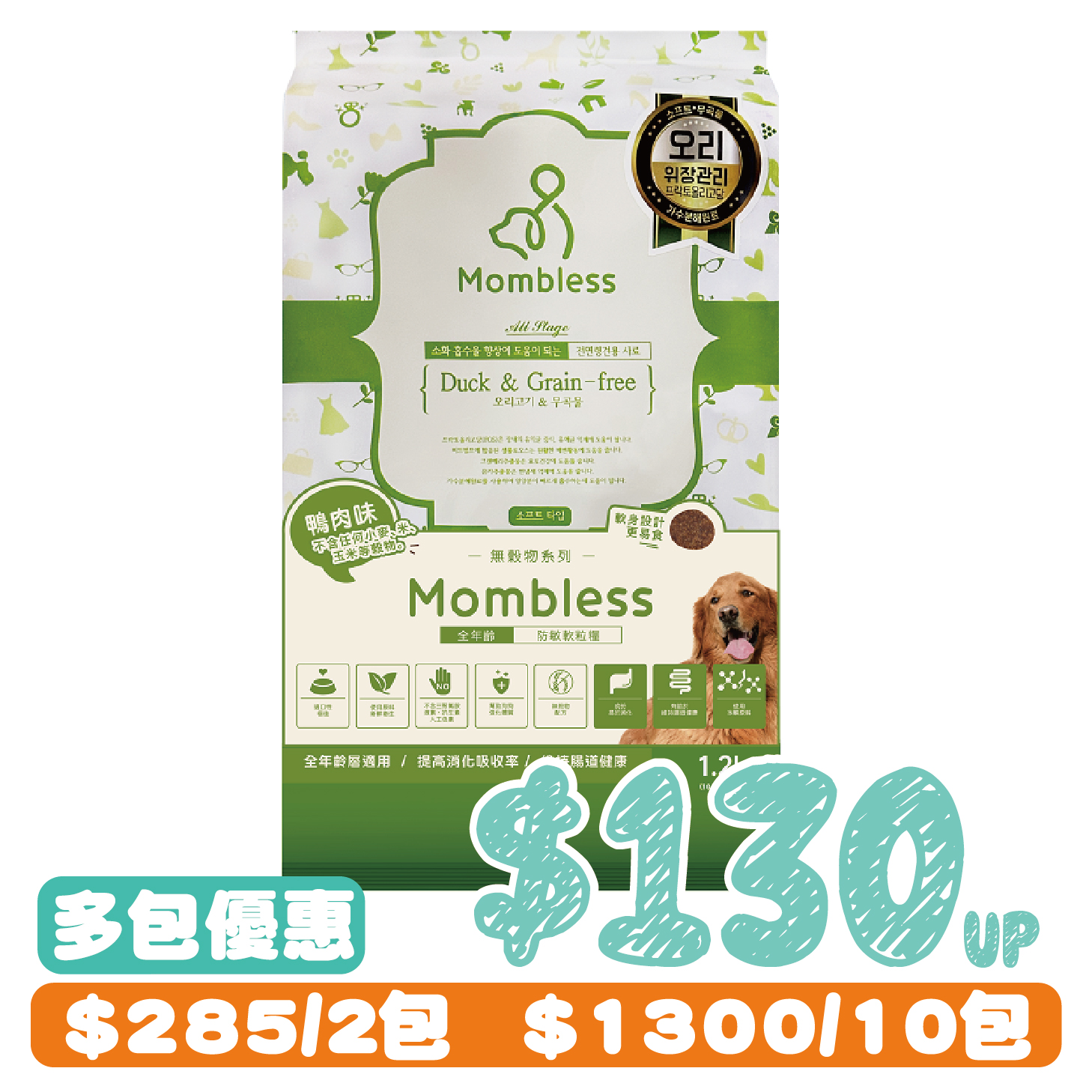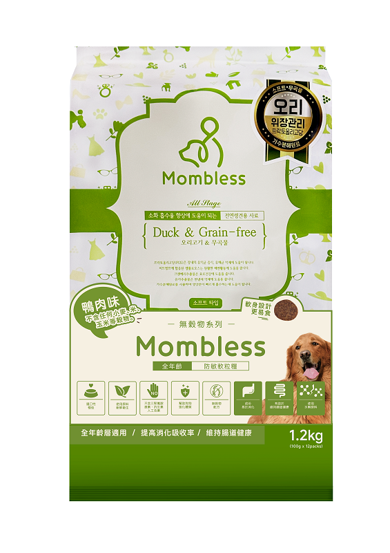 寵物約有70%的免疫細胞在腸道,良好的腸道系統能夠避免很多疾病發生,鴨肉配方軟粒糧針對腸道及消化問題,並且能提高身體對食物的利用及吸收率,Mombless 最佳配方能有助愛犬達成以上目標。