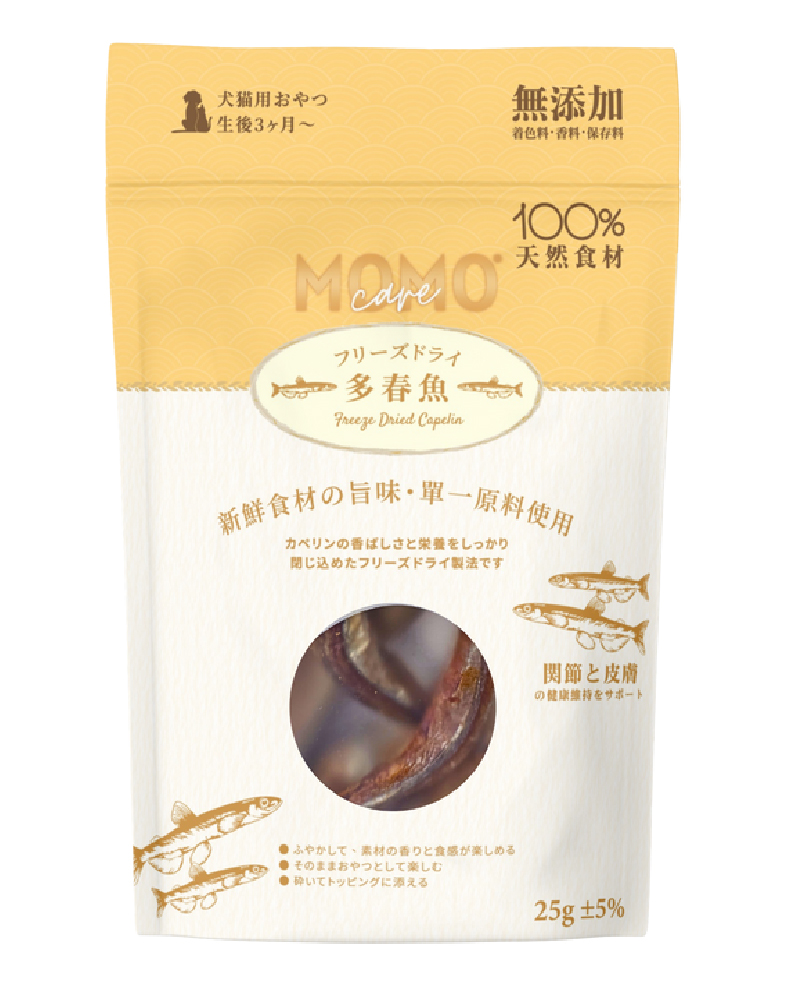 採用冷凍乾燥製法,完整保留多春魚的營養與風味。 ❖ 成份表: 粗蛋白 (Crude Protein): ≥63% 粗脂肪 (Crude Fat): ≥18% 粗纖維 (Crude Fiber): ≤0.34% 水分 (Moisture): ≤5% ❖ 營養:含鈣+小魚骨、嗜口性高 ❖ 功效:補鈣、刺激食慾 ❖ 淨重量:25g ±5% / 50g ±5% 👉 適用:幼貓幼犬、補鈣期、挑食毛孩 👍100%全天然成份冷凍脫水小食 👍含豐富天然蛋白質及必需營養素 👍有助增強免疫系統及消化系統 👍適合任何年齡貓犬 ❌無穀物 ❌無麩質 ❌無人工香料 ❌無防腐劑