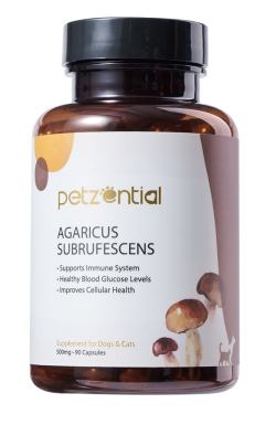 Petzential姬松茸是一種能提高免疫力的菌類植物,含多醣體、蛋白質、多種維生素、礦物質、食物纖維、消化酵素、麥角甾醇、核酸及多種氨基酸。其中β-D-葡聚醣及a-D-葡聚糖更是姬松茸特有高效成份,有活化免疫系統,降膽固醇,抑制腫瘤的功效。