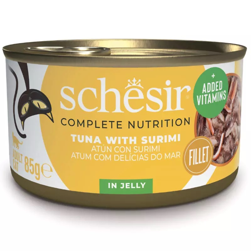 [$360/24罐]Schesir 貓罐頭(主食) 啫喱系列 吞拿魚蟹肉 85g (黃)(新包裝)[斷貨中, 預計2026.1月初到貨, 可預訂等貨到]