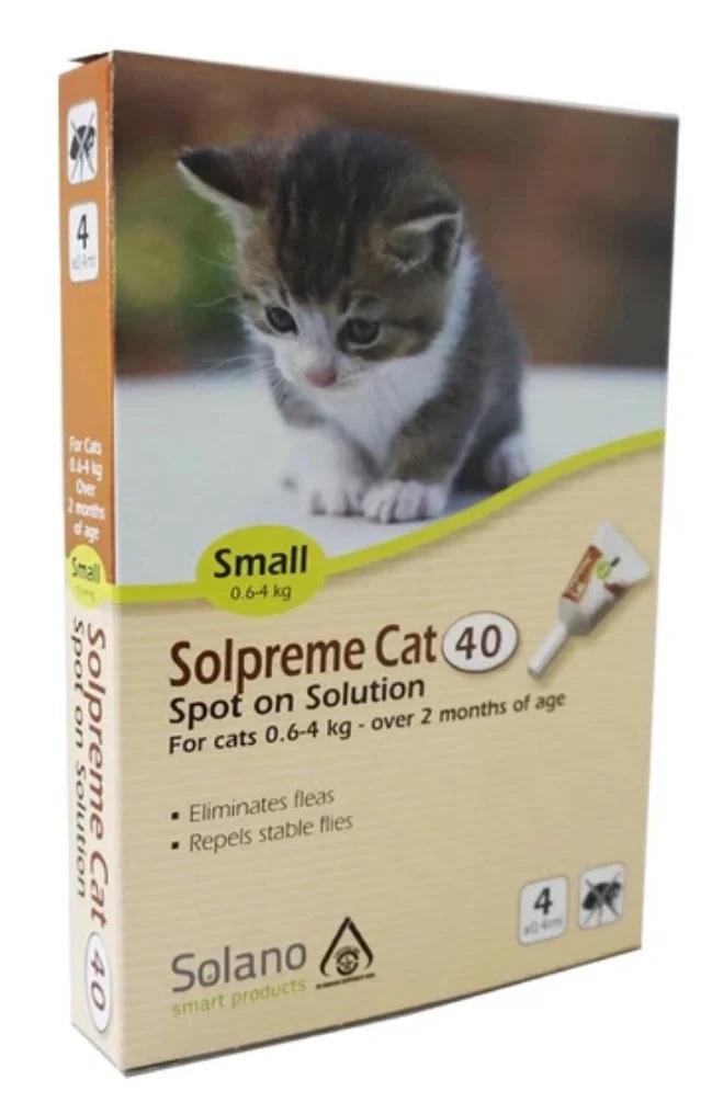 小號裝(Solprem,一e Cat 40)適用於體重 0.6-4 公斤、2 個月以上的貓咪。大號裝(Solpreme Cat 80)則適用於體重超過 4 公斤的貓咪。無論您的小貓還是成貓,都能找到合適的產品。
