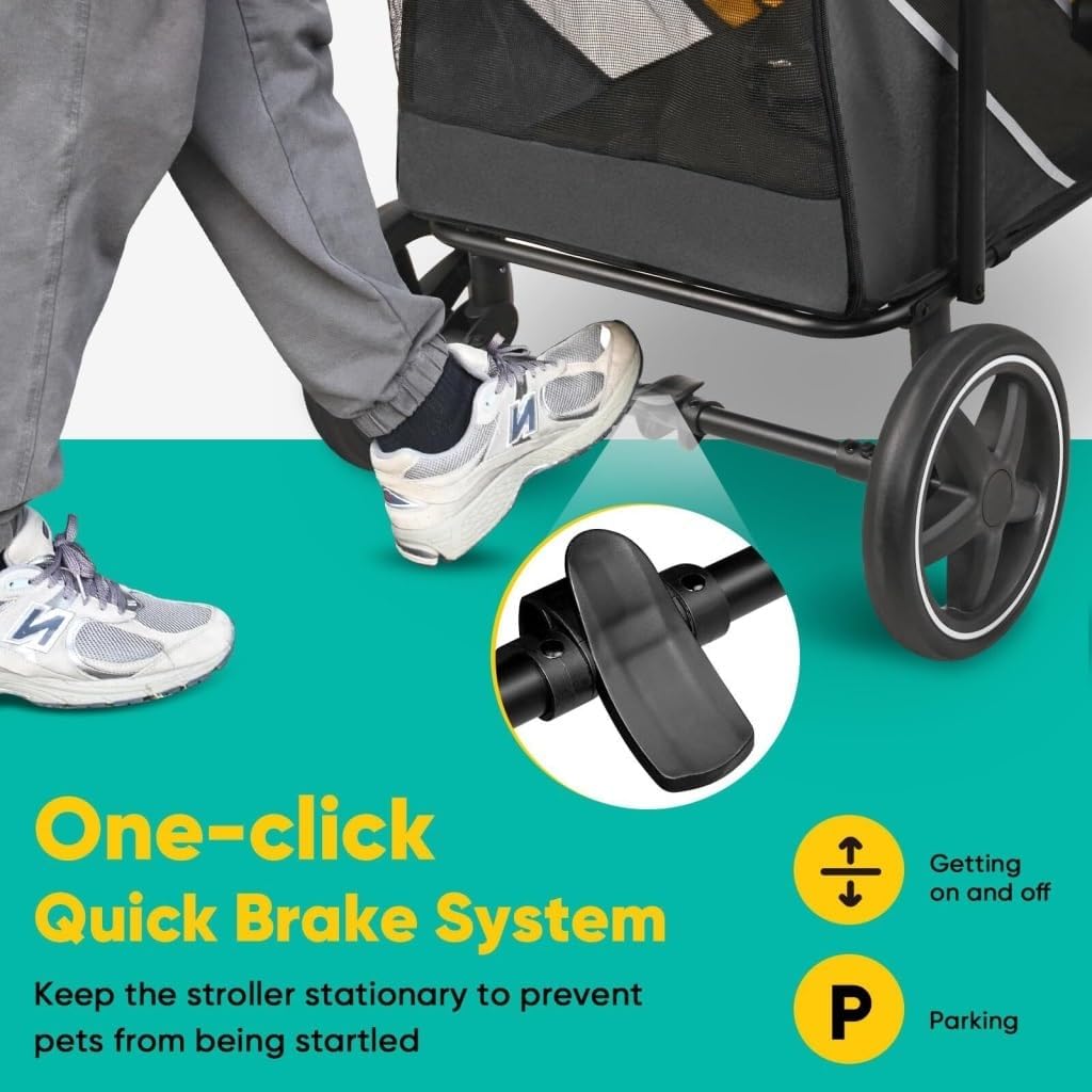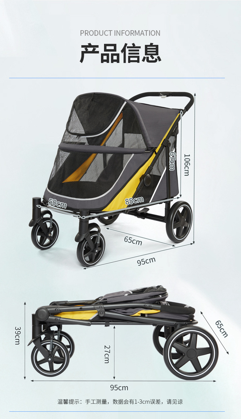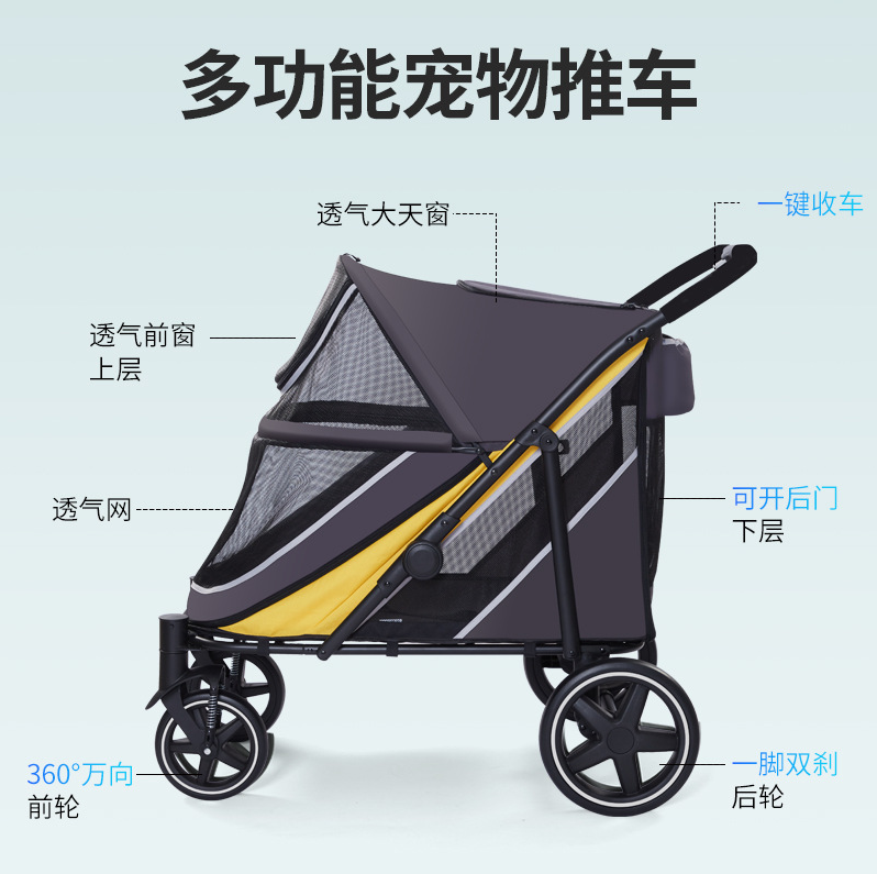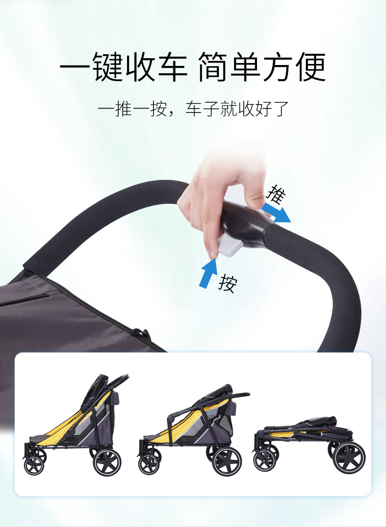 這款寵物推車能夠輕鬆應對各種路況,例如公園的碎石路和住宅區的人行道。推行順暢省力。無論是帶寵物去看醫生、散步或旅行,寵物推車都能讓主人出行更輕鬆,並為寵物提供安全舒適的旅行體驗,深受寵物主人的喜愛。