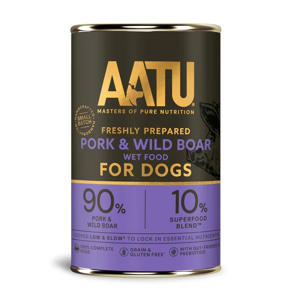 90% Wild Boar & Pork (Includes Wild Boar 30%, Pork 30%, Pork Broth 30%), Sweet Potato, Carrots, Lucerne, Peas, Chickpeas, Minerals, Tomato, Tapioca, Apple, Pear, Cranberry, Blueberry, Mulberry, Orange, Bilberry, Cowberry, Glucosamine, Chondroitin, Parsley, Peppermint, Spirulina, Seaweed, Oregano, Sage, Marjoram, Thyme, Chamomile, Rosehip, Yucca, Chicory, Aniseed, Stinging Nettle, Marigold, Fenugreek, Cinnamon, MSM.