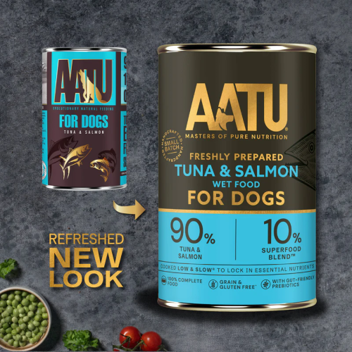 AATU狗罐頭採用90%三文魚和吞拿魚