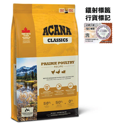 Acana的所有配方都採用最優質、美味的食材,務求以最自然的方式提供營養,盡一切努力幫助您家的毛孩茁壯成長。而Acana經典系列 – 草原家禽配方則嚴選優質家禽原料、水果、穀物和蔬菜,並將這些營養豐富的成分按照50/50的比例均衡分配,為您的愛犬提供由簡單、有益成分製成的美味餐食,這些有益成分營養豐富,能支持三大關鍵健康益處,包括強健狗狗的免疫功能,維護狗狗腸胃健康及維持狗狗皮膚皮毛健康亮麗。
