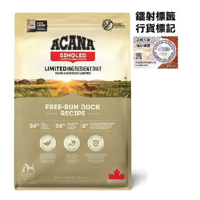 Acana 無穀物狗糧 單一蛋白 放養鴨配方 Singles Free-Run Duck 2kg ADFD2K (肉色)