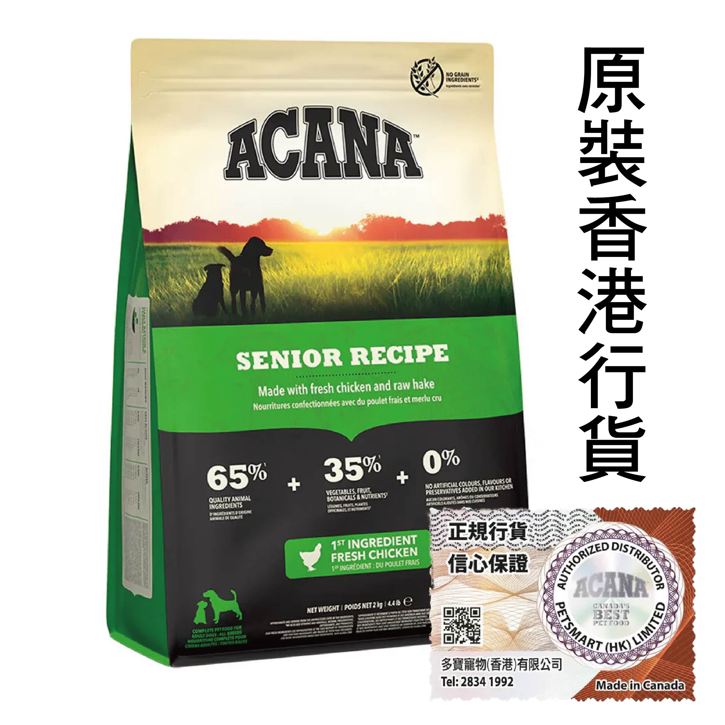 Acana 無穀物狗糧 傳承 老犬配方 (雞肉) Senior 2kg ADS2K (綠)