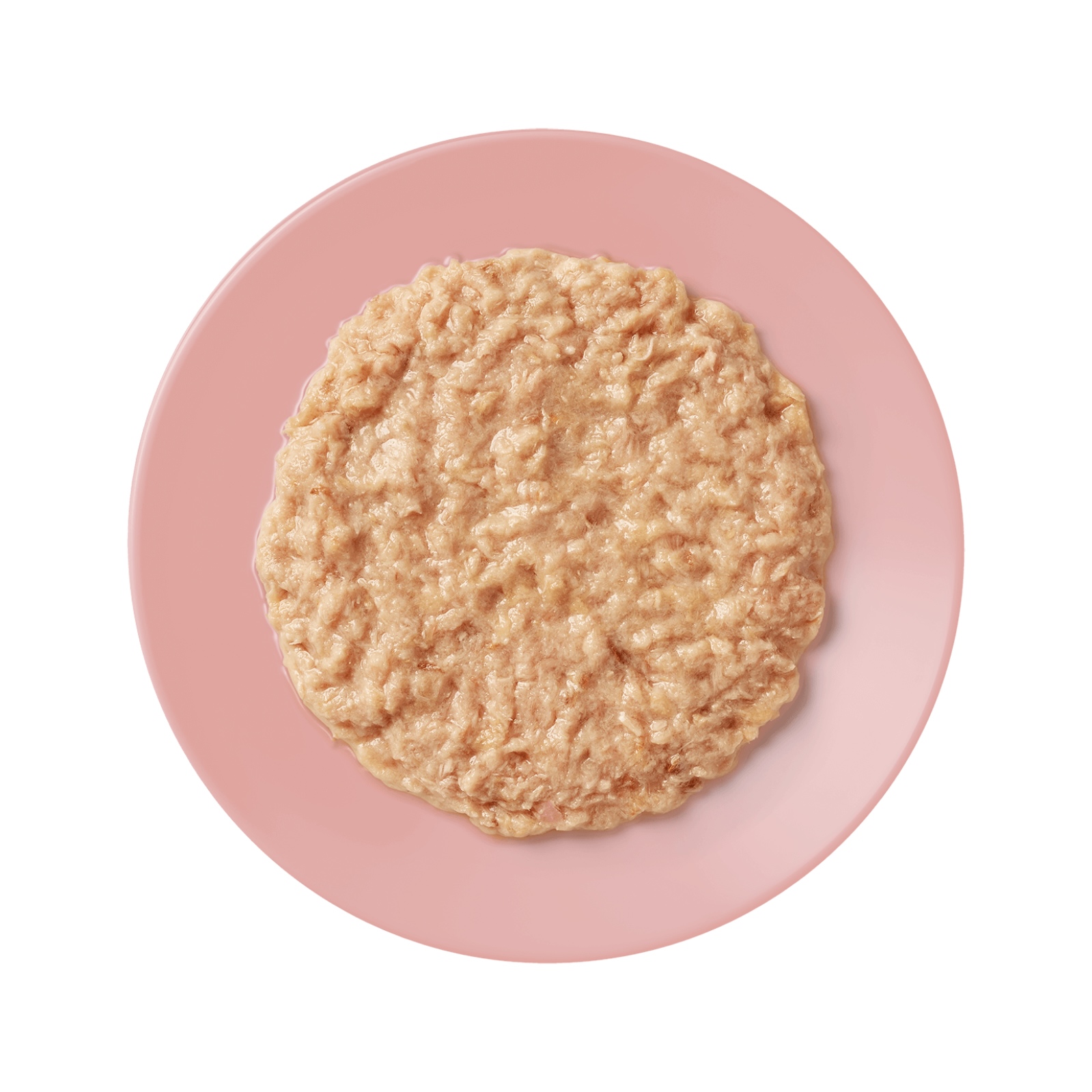 吞拿魚片* 40%,三文魚* 8%,米粉*,植物膠凝劑。 *天然成分。
