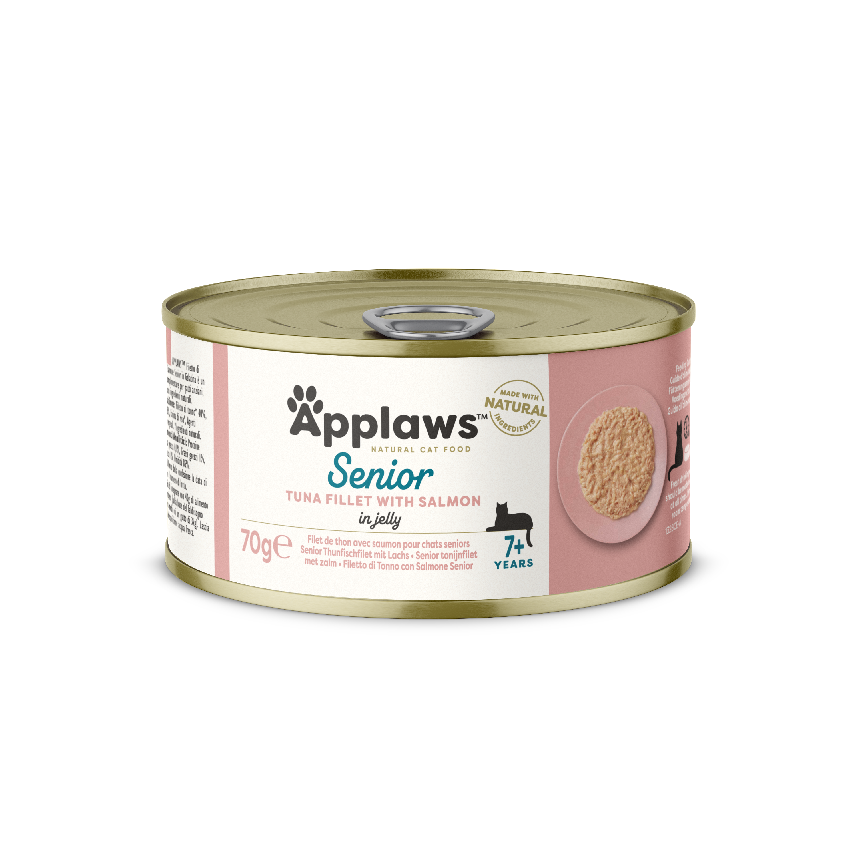 Applaws 高齡貓吞拿魚加三文魚啫喱是為高齡貓設計的輔助寵物食品,採用天然成分製成。