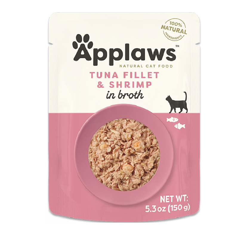 - Applaws 輕便貓濕糧包系列,設有5款不同口味。吞拿魚 + 太平洋蝦,每包含75%吞拿魚和太平洋蝦肉,為貓咪提供優質蛋白質、氨基酸、奧米加3及6脂肪酸,配以鮮甜魚湯,健康美味,貓咪一試難忘!