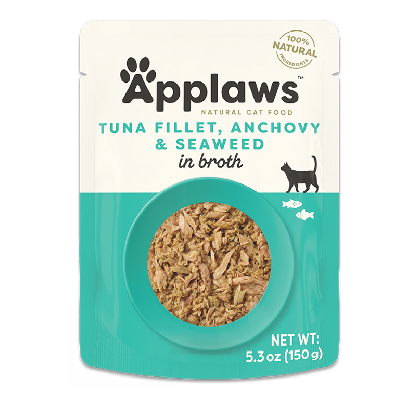 - Applaws 輕便貓濕糧包系列,設有5款不同口味。吞拿魚 + 鯷魚,每罐含75%吞拿魚和鯷魚,為貓咪提供優質蛋白質、氨基酸、奧米加3及6脂肪酸,配以鮮甜魚湯,健康美味,貓咪一試難忘!