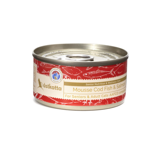 [$324/24罐]Astkatta 無膠主食貓罐頭(慕絲) 鱈魚&三文魚 (高齡貓) 80g (紅)