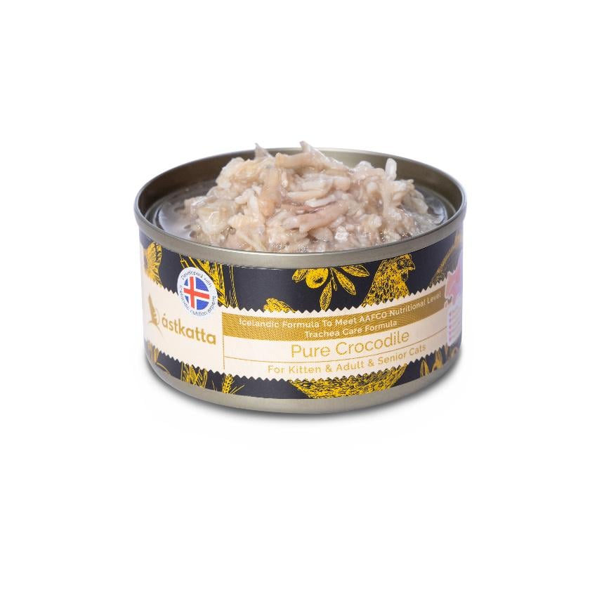 [$528/24罐]Astkatta 無膠主食貓罐頭(肉絲) 純鱷魚(氣管保養) (全貓) 80g (黑)