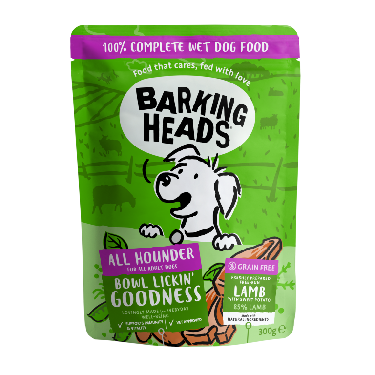 [低至$26/1包]Barking Heads 犬食濕糧包 無穀物 成犬 羊肉 (綠色) 300g (新舊包裝隨機發貨)