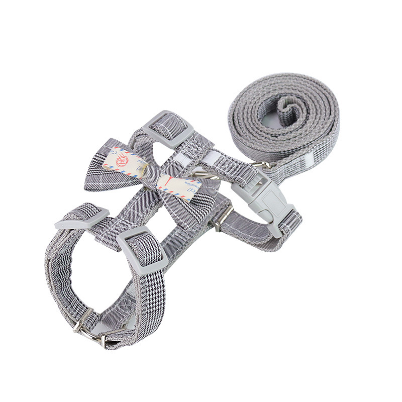 可調節蝴蝶結貓貓工字胸背帶+牽引繩