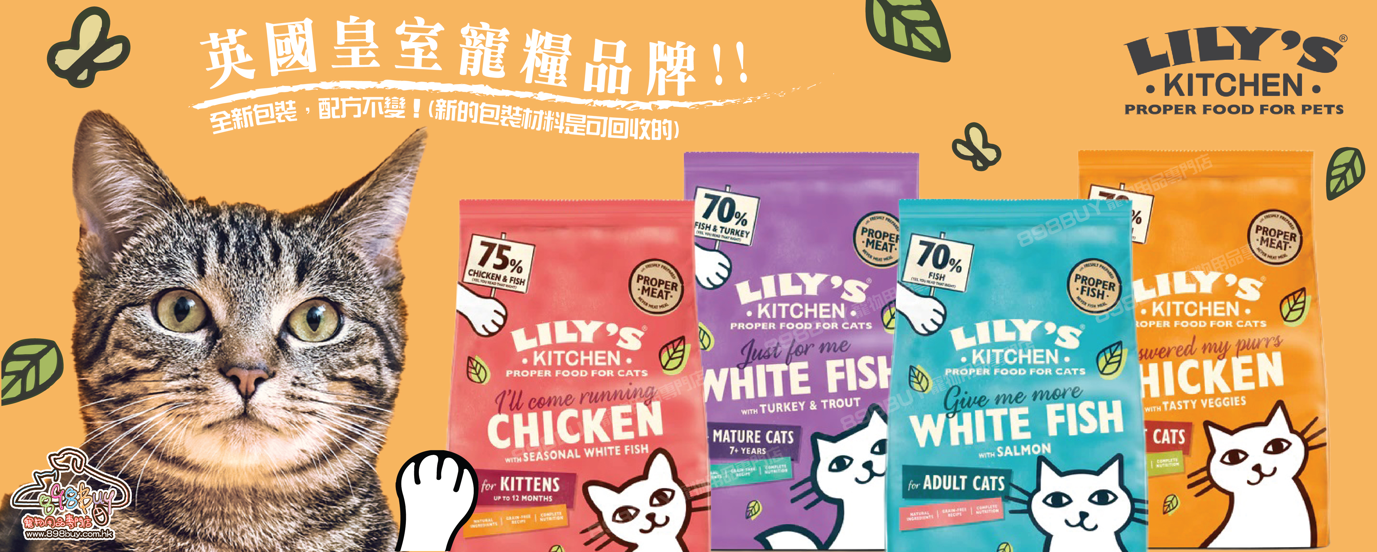 Lily's Kitchen 源於英國的天然寵物食品,貓糧採用天然、有機食材,無穀物,並強調使用新鮮肉類而非肉粉。配方由獸醫和營養師共同研發,從幼貓、成貓到老貓、不同健康需求的選擇,並特別關注貓咪所需的完整營養,包括高品質蛋白質、Omega-3/6 脂肪酸以及天然維生素和礦物質。此外,產品更有專為腎臟較弱或年長的貓咪設計的低磷配方。 品牌已連續多年獲得英國皇室御用徽章認證。