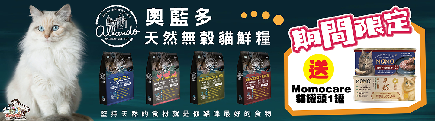 凡購買 Allando 奧藍多 乾糧,即可免費換領 "MOMOCARE 貓罐頭" 1件(隨機口味)