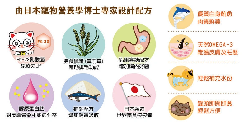 想一罐搞定,美味+營養補充+健康支持嗎? 每一口用心,日本美味營養,專屬愛貓呵護!好吃美味又兼具多機能保健效果!AKANE罐頭通常以優質肉類為主要蛋白質來源,能提供貓咪成長所需的氨基酸。部分配方更添加了維生素、礦物質及牛磺酸,這些對幼貓的視力、心臟及骨骼發育至關重要。