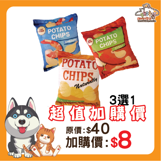 買滿$100加購 發聲寵物狗玩具 辣椒蕃茄薯片(紅)/原味蕃茄薯片(橙)/鮮蝦蕃茄薯片(藍)