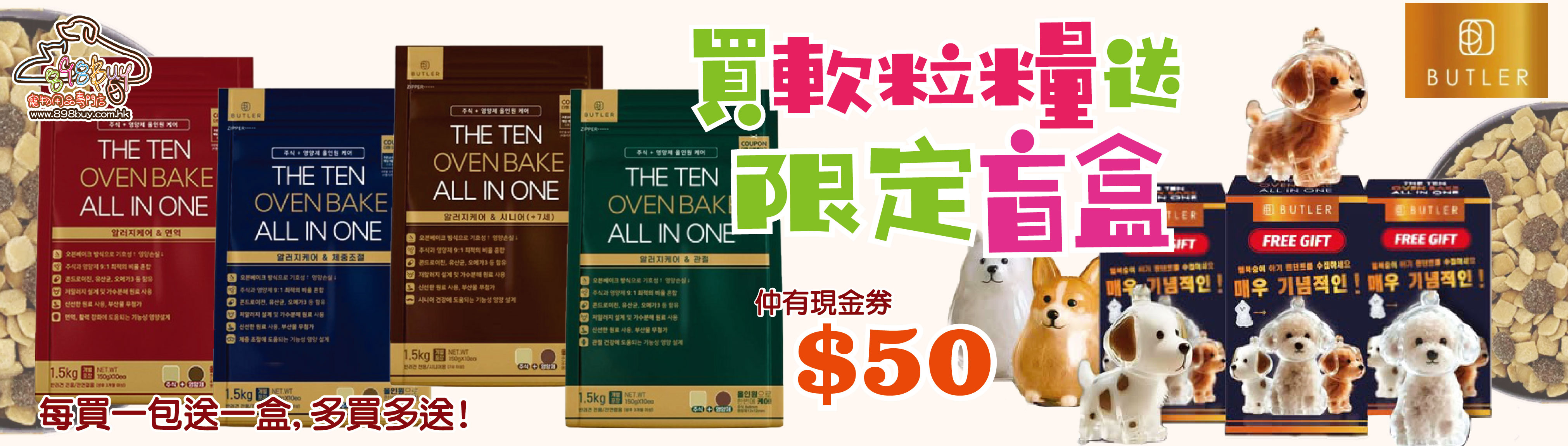凡購買1包Butler The Ten 狗糧,即可免費換領 "狗狗吊飾盲盒" 1件