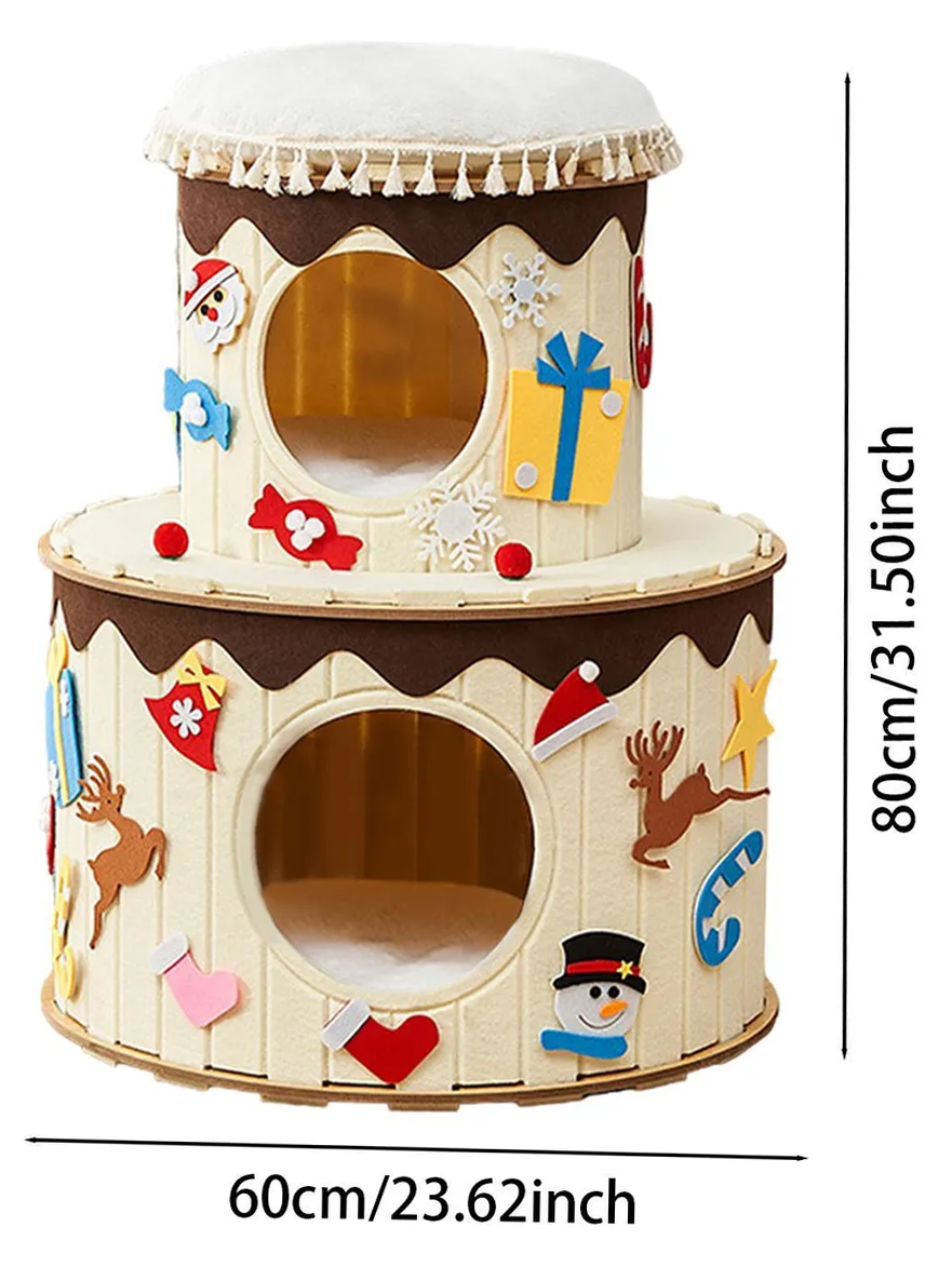 三合一設計:為了滿足貓咪的狩獵和磨爪需求,雙層蛋糕型不織布貓窩是您的最佳選擇。這款互動式貓玩具結合了貓抓板、毛絨氈和睡窩,能夠為貓咪提供數小時的運動和娛樂。