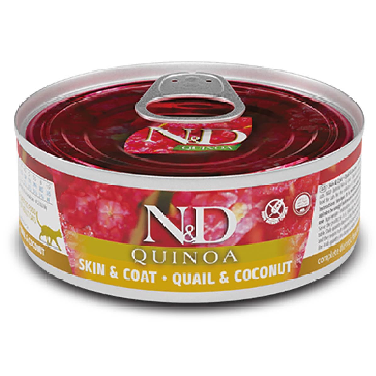 N&D藜麥皮膚護理配方鵪鶉椰子貓罐頭,釋放 N&D 藜麥皮毛配方的強大功效,專為食物敏感型貓咪打造的終極配方。本產品經科學配製,專為患有過敏、不耐症、搔癢或熱點的貓咪設計,確保最佳營養和舒適度。符合美國飼料管理協會(AAFCO)制定的貓糧營養標準,滿足維持貓咪健康所需的營養水準。 100%滿意保證。