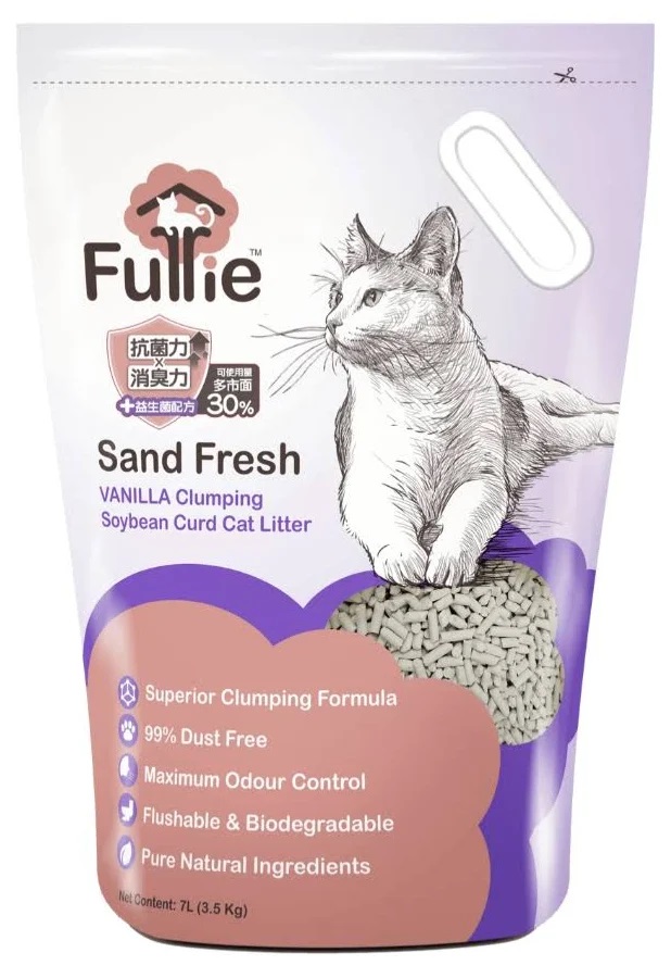 1. 把FurrieTM (芙莉爾) Sand Fresh幼條狀天然豆腐粟米砂(雲呢拿味)倒入一清潔的貓砂盆內至約5-