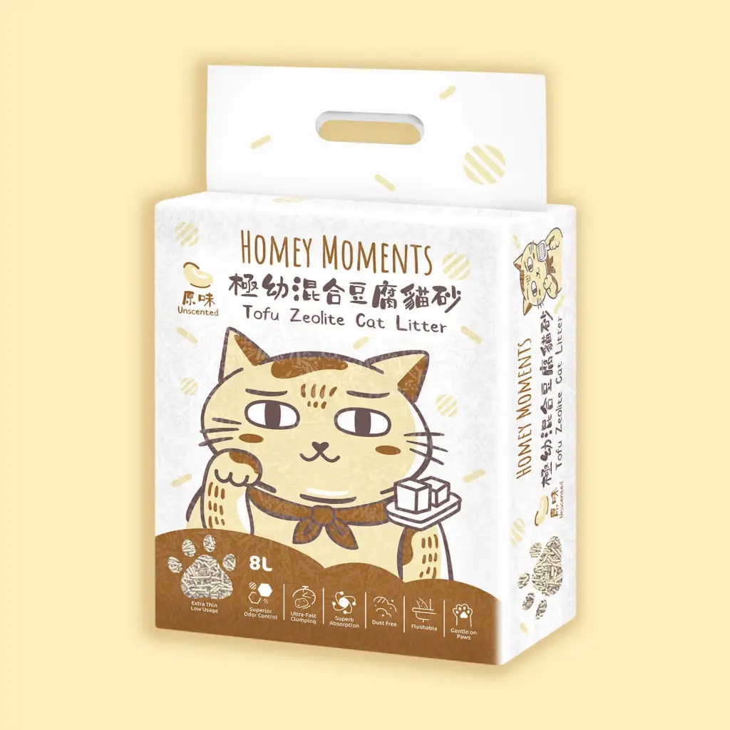 Homey Moments極幼混合貓砂,有原味、活性碳、綠茶及雲呢拿奶泡四款。