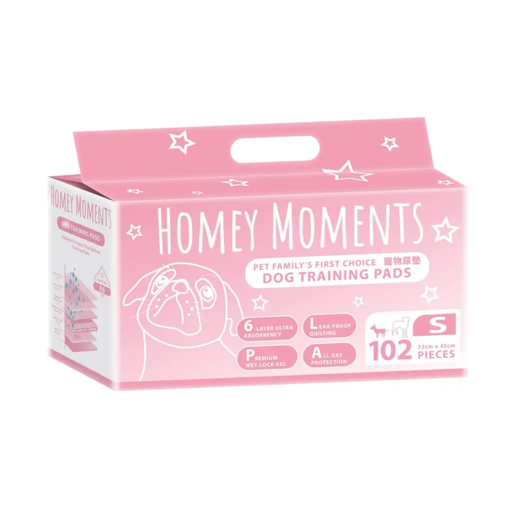 Homey Moments 6層鎖水寵物尿墊使用進口木漿。6層鎖水構造。四邊防漏設計。鎖水力強、快速吸收、無香味。