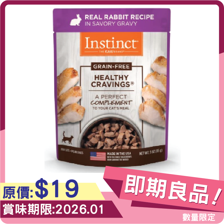 [特價品]Instinct 本能 貓用 無穀物 濕糧鮮包 兔肉 3oz [EXP:2026.01]