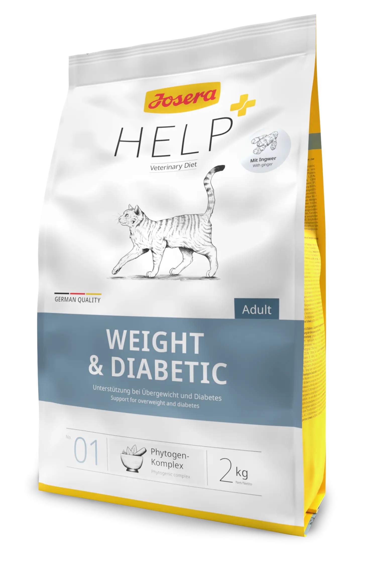 如果貓咪難以從貓抓柱上跳下來,飲水過多,食慾旺盛,體重忽增忽減,則可能患有糖尿病。與人類一樣,此時需要為貓咪制定符合其需求的飲食計劃:Josera Help Weight & Diabetic 貓糧可以幫助貓咪維持理想體重,或透過適量餵食,溫和地減輕體重,從而控製糖尿病。這款低卡路里、低糖配方非常適合此類飲食。膳食纖維有助於維持正常的血糖水平,並增強飽足感。植物複合物中含有生薑,具有促進消化的功效。 ——生薑是傳統的糖尿病輔助成分。 Josera Help Weight & Diabetic 貓糧透過減少卡路里攝入,幫助貓咪減輕體重並維持理想體重,讓您的愛貓倍感舒適。對於患有糖尿病的貓咪,這款配方也能起到輔助治療的作用。