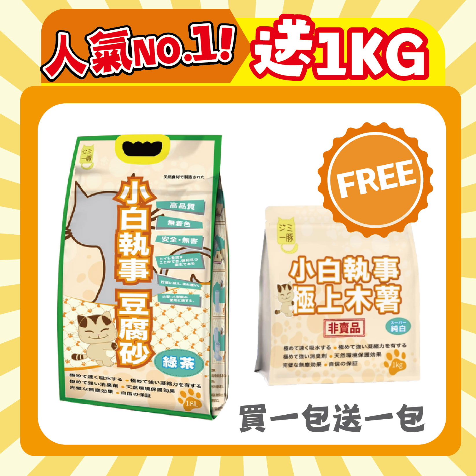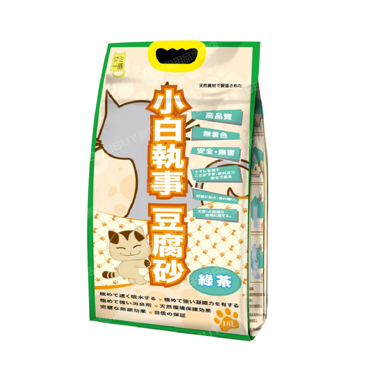 小白執事豆腐砂採用日本最新凝結技術,提升貓砂的吸水及吸臭能力。小白執事標榜超潔白,超凝結,超吸水,超除臭,並可直接沖廁,環保可靠。以防貓隻誤吃,更以豆腐渣製造,對健康無害。