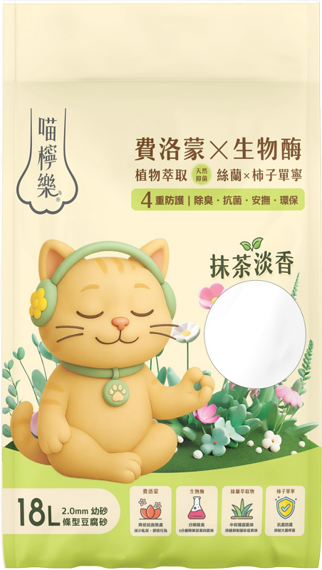 喵檸樂 四重防護天然豌豆豆腐貓砂 費洛蒙x生物酶 (抹茶淡香) 2.0mm 米粒型 18L