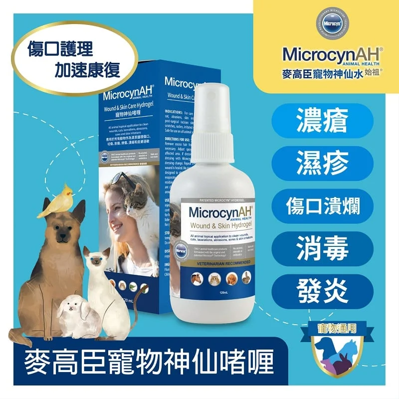 MicrocynAH 麥高臣寵物神仙啫喱,於表面形成透明繃帶並緩慢的揮發,保護皮膚免受二次傷害。