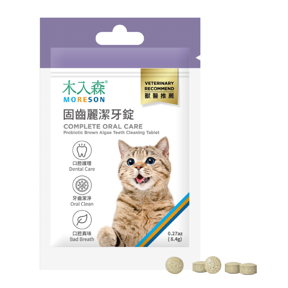 木入森《貓咪固齒麗潔牙錠》,有別於傳統貓咪潔牙方式,不用接觸牙齒也有效。適合「沒時間幫貓咪刷牙」、「貓咪不愛刷牙」、「貓咪口臭」的飼主。