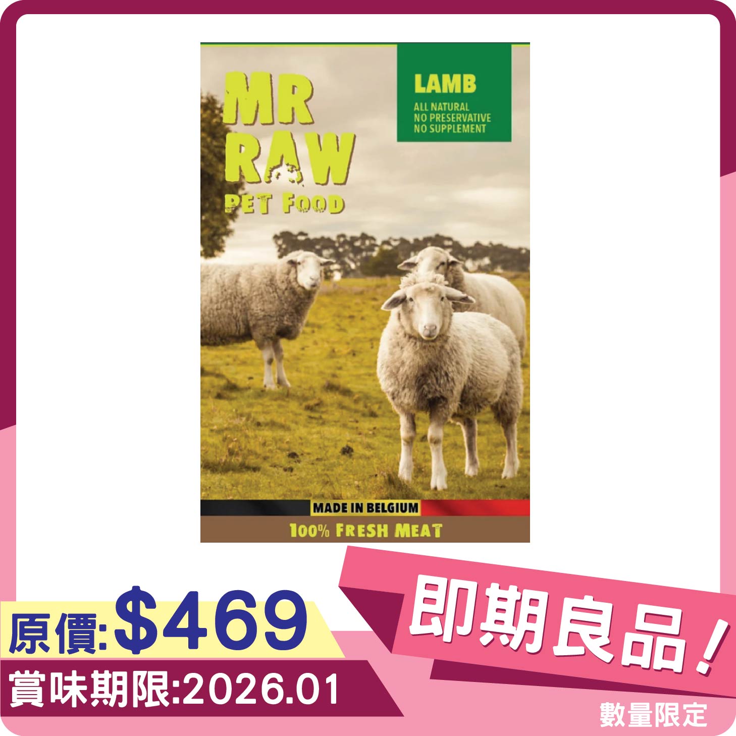 [特價品]MR RAW 原生食材凍乾生肉糧 單一蛋白 羊肉 400g (貓狗共用)[EXP:2026.06]